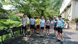 今年も猛暑、いや酷暑。この日も35度近い気温で尋常でない状態でしたが、クラブ75周年記念行事の一つである「東京→直江津300キロ」の特訓ランとして、青梅は成木の周回コースで100キロ耐久4時間にチャレンジです。周回コース現地には、男女合わせて猛者9名が集合です。