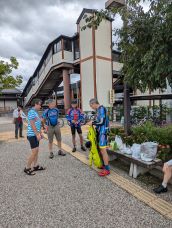 なんとかたどり着いた第四CP(信濃国分寺駅前)。地元在住の古参メンバーによるサポートに心の充電です。今度は向かい風を浴びながら、長野盆地を北上する。なんとか明るいうちに妙高の登りにアタックしたいが…..。