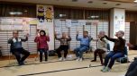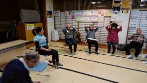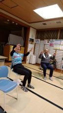 当日は理事会・役員会が30分延びた為、1時間30分予定を15分短縮です。場所が和室なので、畳の上に座布団を準備するも「椅子が良い」との要望から、全員椅子に座っての体操です。