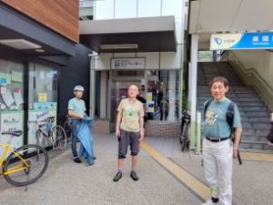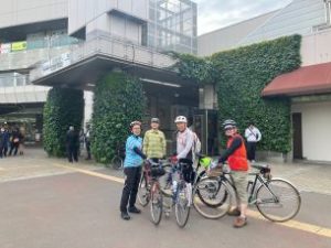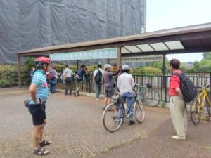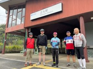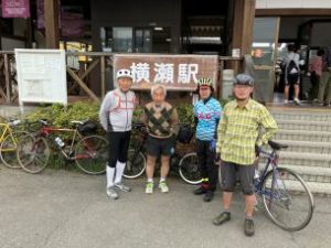 集合地点の西武新宿線狭山市駅は、南西に向いた左の車窓が北西に変わるややこしい駅。東だか西だか分からない…。自走一番乗りの最年長メンバーの誘導で、輪行メンバーも西口へ。御大、感謝です。 8 名でスタート。
