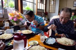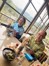 国道299号を下って吾野駅前の奥武蔵美晴休憩所で、お昼のうどん。伴走車はここで離脱。