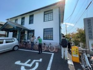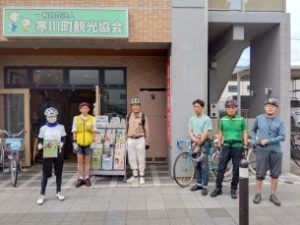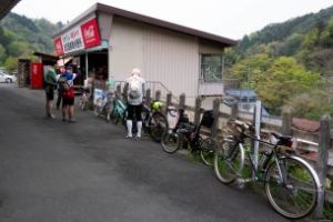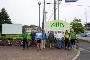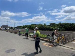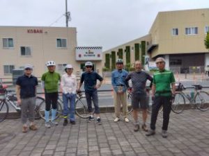 若手メンバーも合流し、フルメンバー9名でお昼前に出発。多くのサイクリストがお世話になっている三ヶ島製作所の工場横を過ぎ、地トトロのふるさと基金クロスケの家の前にある、狭山園の狭山抹茶最中あいすでエネルギーチャージを……なんと品切れ、無念だ。