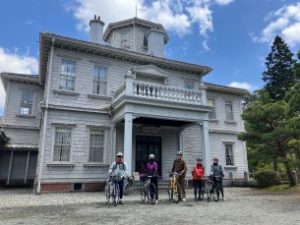前日は終日雨天で天候には一抹の不安があるも、雲が多めながら好天。やや肌寒い空気も、東北らしさと思えばそれもよし。最初の見学地、史跡天鏡閣(有栖川宮別邸)を目指して走り出す。