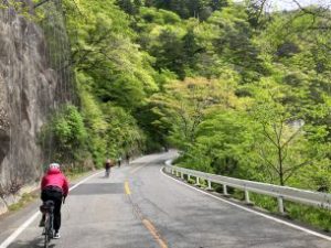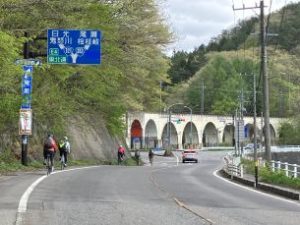 東北開拓近代化の歴史を感じる安積疏水、戊辰戦争の古戦場跡である戸ノ口原を経由し、東北民話の世界を今に伝える強清水で飲料水の補給の後、名店のそば屋で昼食。5月だがまだ桜の咲き誇る東北の街道は、ペダルを踏む足もはかどります。