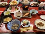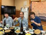 その後、芦ノ牧温泉駅の猫駅長にも会って、ツーリングの初日は大満足。その日の宿「民宿みやもと屋」では会長、レディース達も加わり、夕食は大盛りでした。