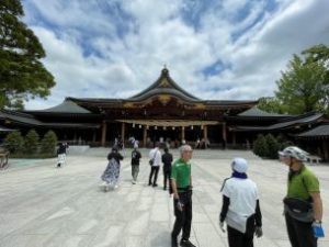 八方除けで有名な一之宮寒川神社へ。威厳のある神社です。相模線沿いの旧道から相模川自転車道に入り、海老名の「ことしろ」に11時半過ぎに到着。会長も合流してテラス席で昼食。
