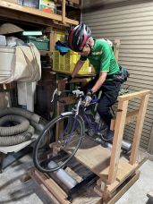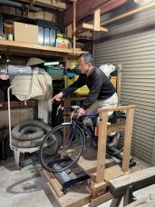 午後は有鹿神社で参拝。神社隣に住んでいるメンバー宅で、なぜか三本ローラーに挑戦。手作りの感満載のローラー台は、バランスを取るのが難しい(笑)