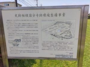 国分寺建立の経緯と出土瓦の産地、七重塔の金銅製水煙出土の説明を聞き、残存する礎石も確認。秋葉山古墳群の出土土器には水銀朱が付着していることから、祭祀に使用されたらしい。
