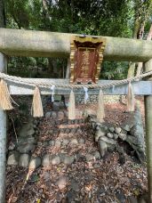 茅ヶ崎市の小出川沿いの台地周辺のスポットである下寺尾官衙遺跡群と西方貝塚へ。遺跡裏手の菅谷神社には本殿前の樹木の間に張られた注連縄、聖域と俗域の境界か。古代より多くの神社やパワースポットが並ぶ、通称「レイライン」らしい。