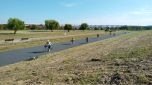 日光街道を少し上って、荒川まで街道を進むと堤防を越える階段。脇道から堤防に上がれるのに、何故かわざわざ階段を担いで登る…..でも、苦労した分、荒川CRの爽快感がたまらない。