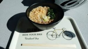 自転車のデザインがいい感じ。お蕎麦もそこそこボリュームあり。