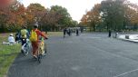 しばしライドして舎人公園へ。紅葉が見ごろの園内を愛でながら、自転車を押し歩き。